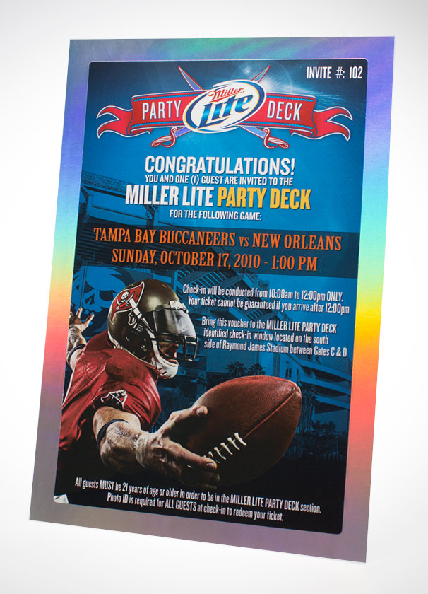 We also offer schedule cards, scratch-off options, tear-off drink vouchers, meal tickets, dimensional toner, UV printing, foil, numbering, barcodes and coupon books.