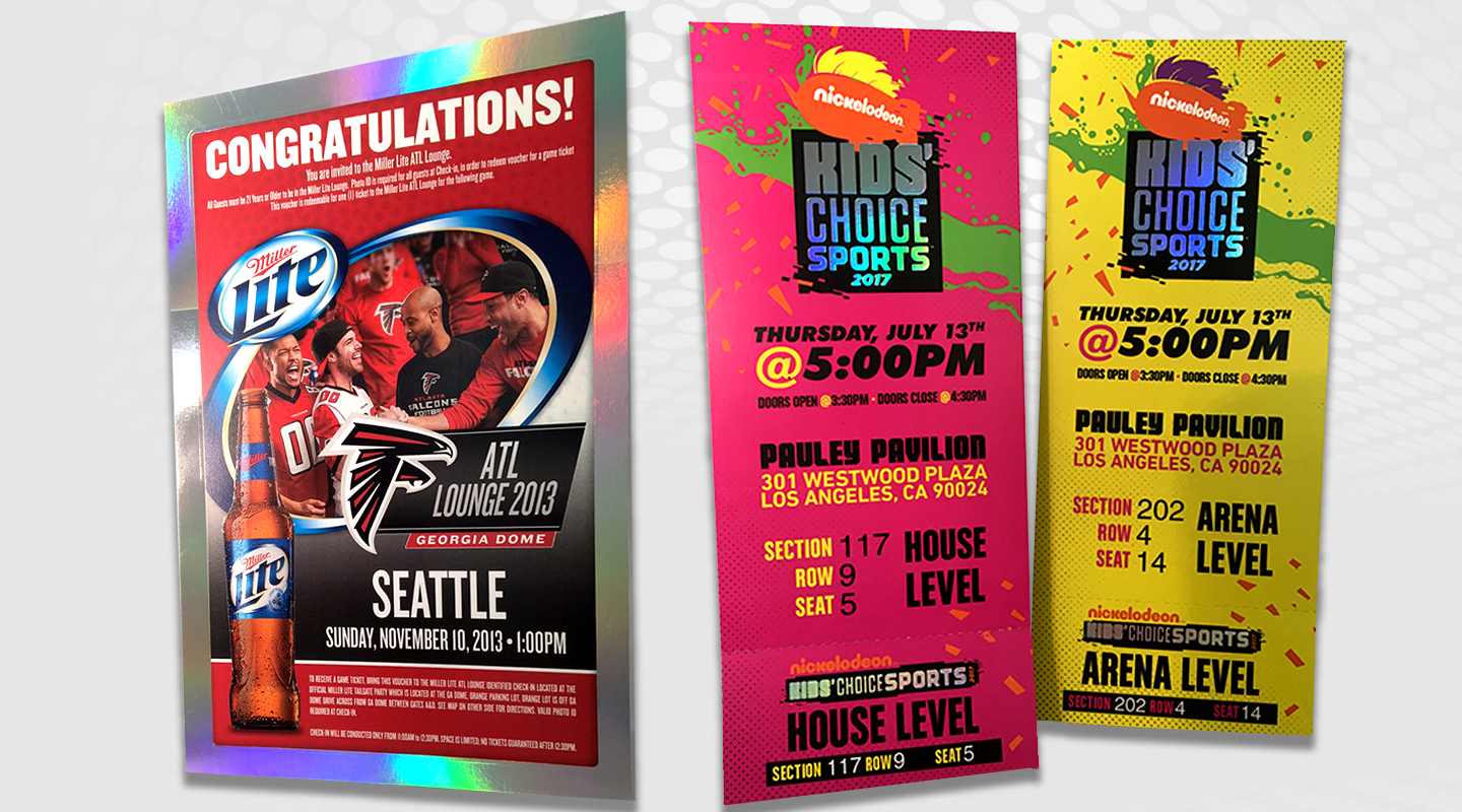 Our commemorative tickets are custom-designed and perfect for sporting events, award shows, party decks, general admission, festivals, and hospitality galas. Add QR codes to drive traffic to a social media component. Add barcodes, numbering, authentic foiling, and perforation to fit your event branding and security needs.